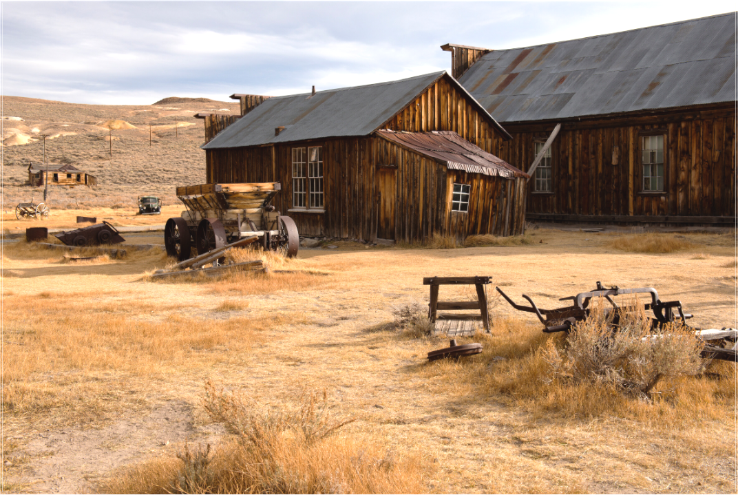 On Halloween day in the ghost town of Bodie, the wind moved slow through dry grass and weathered wood. The old wagon, rusted tools, and leaning buildings stood just as they were left—frozen in time beneath a pale sky. There’s no pretense here, only the stark beauty of what remains.
