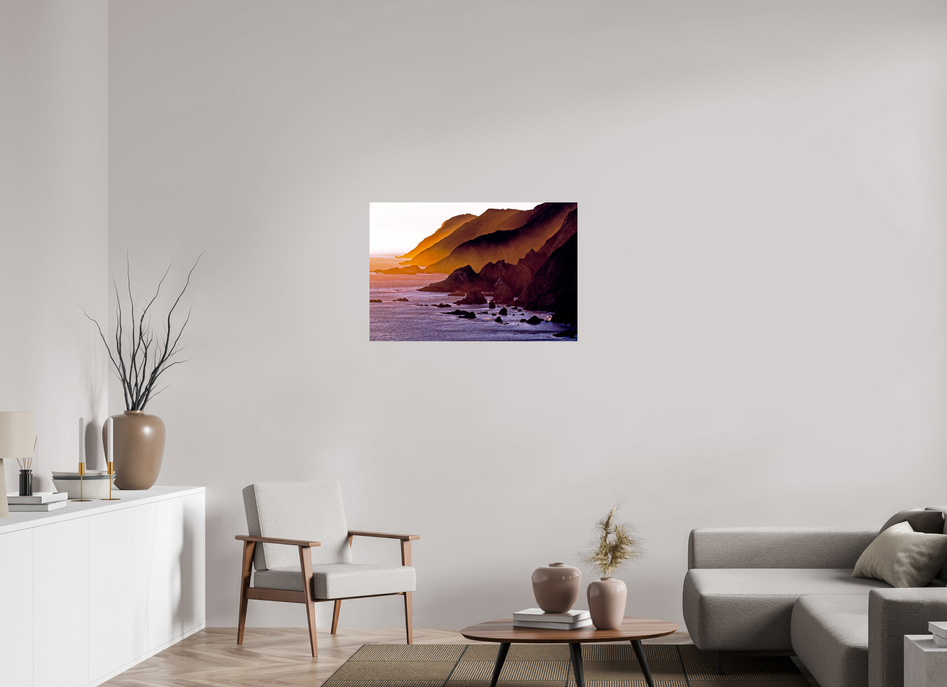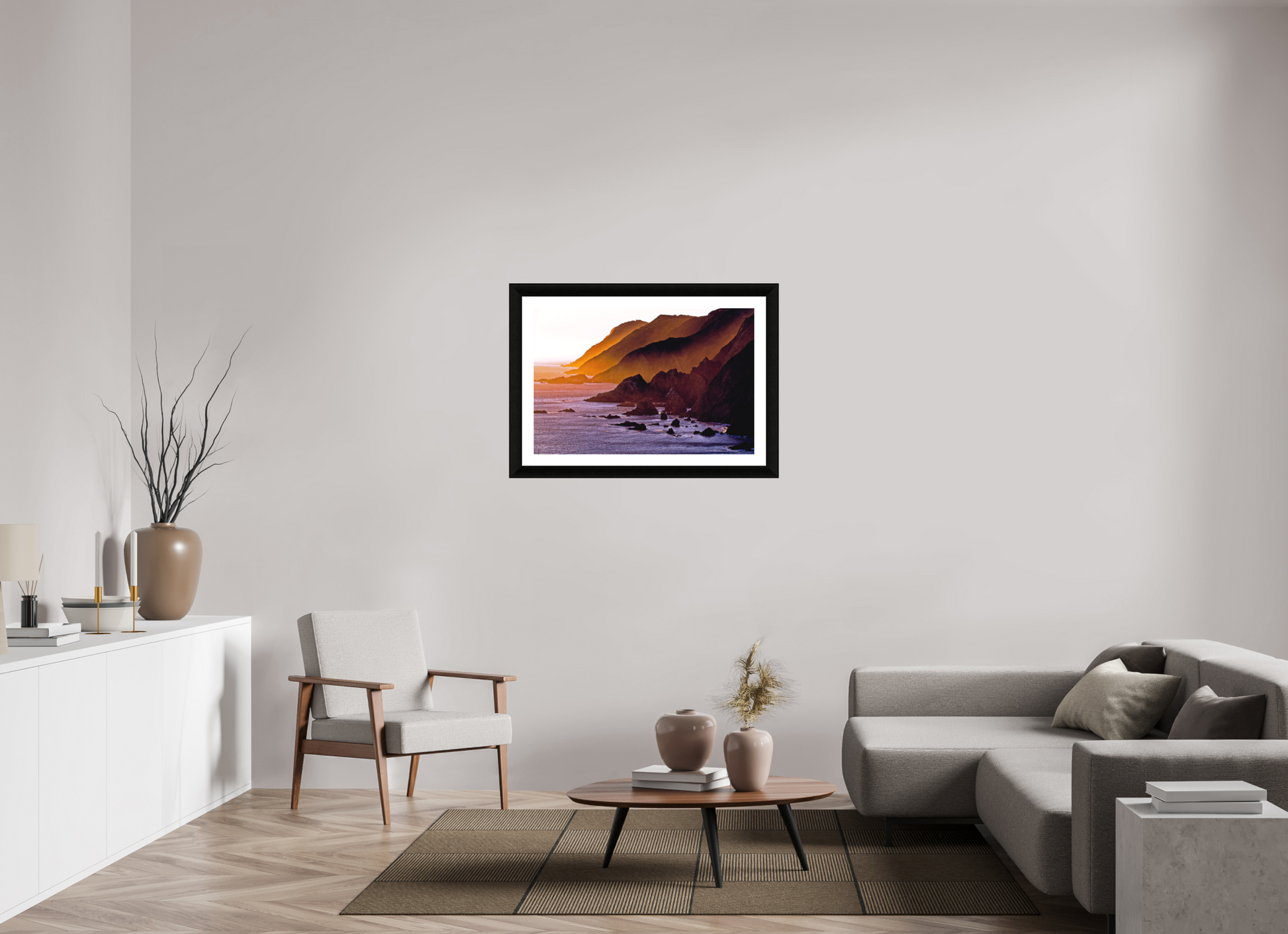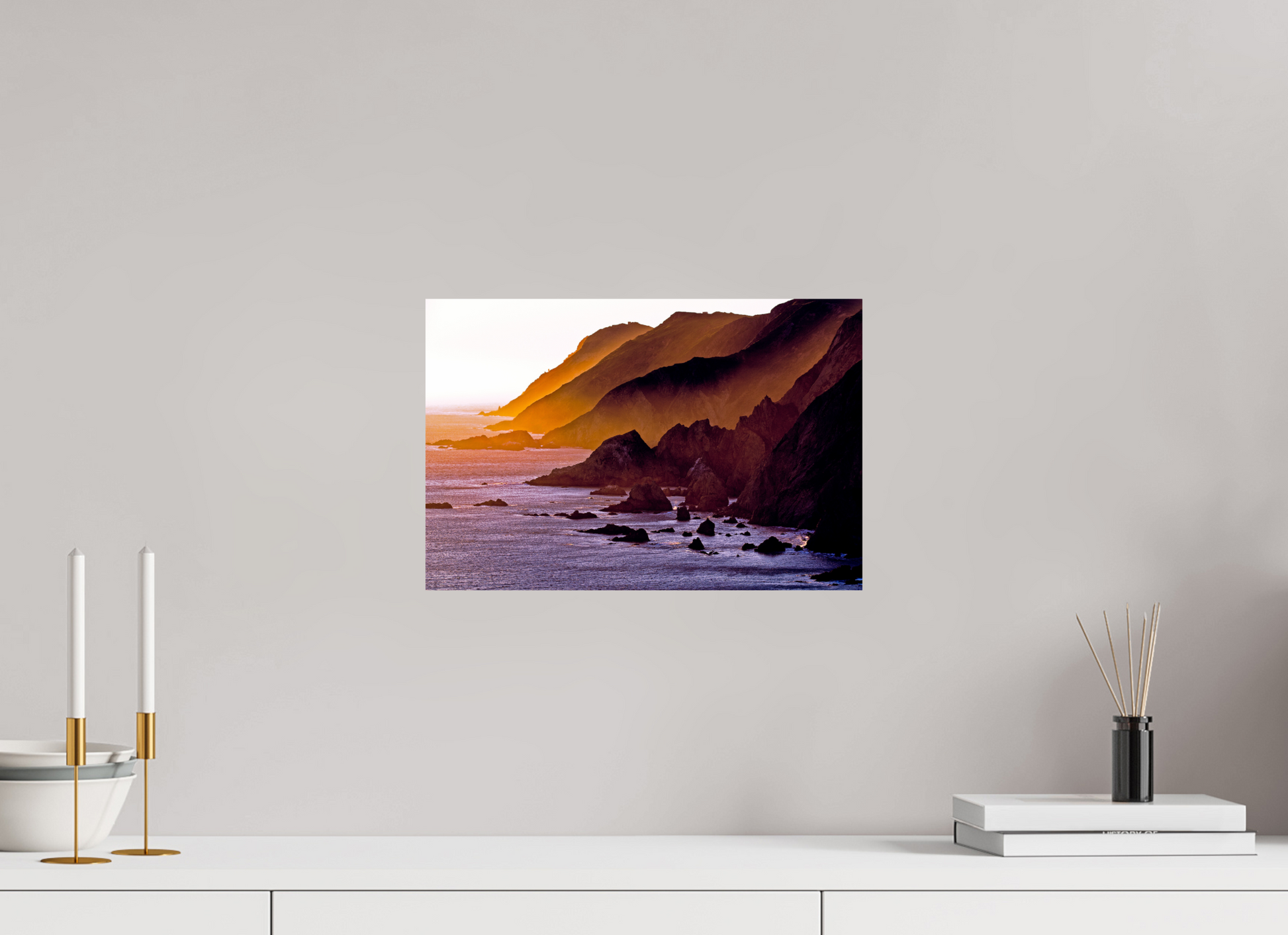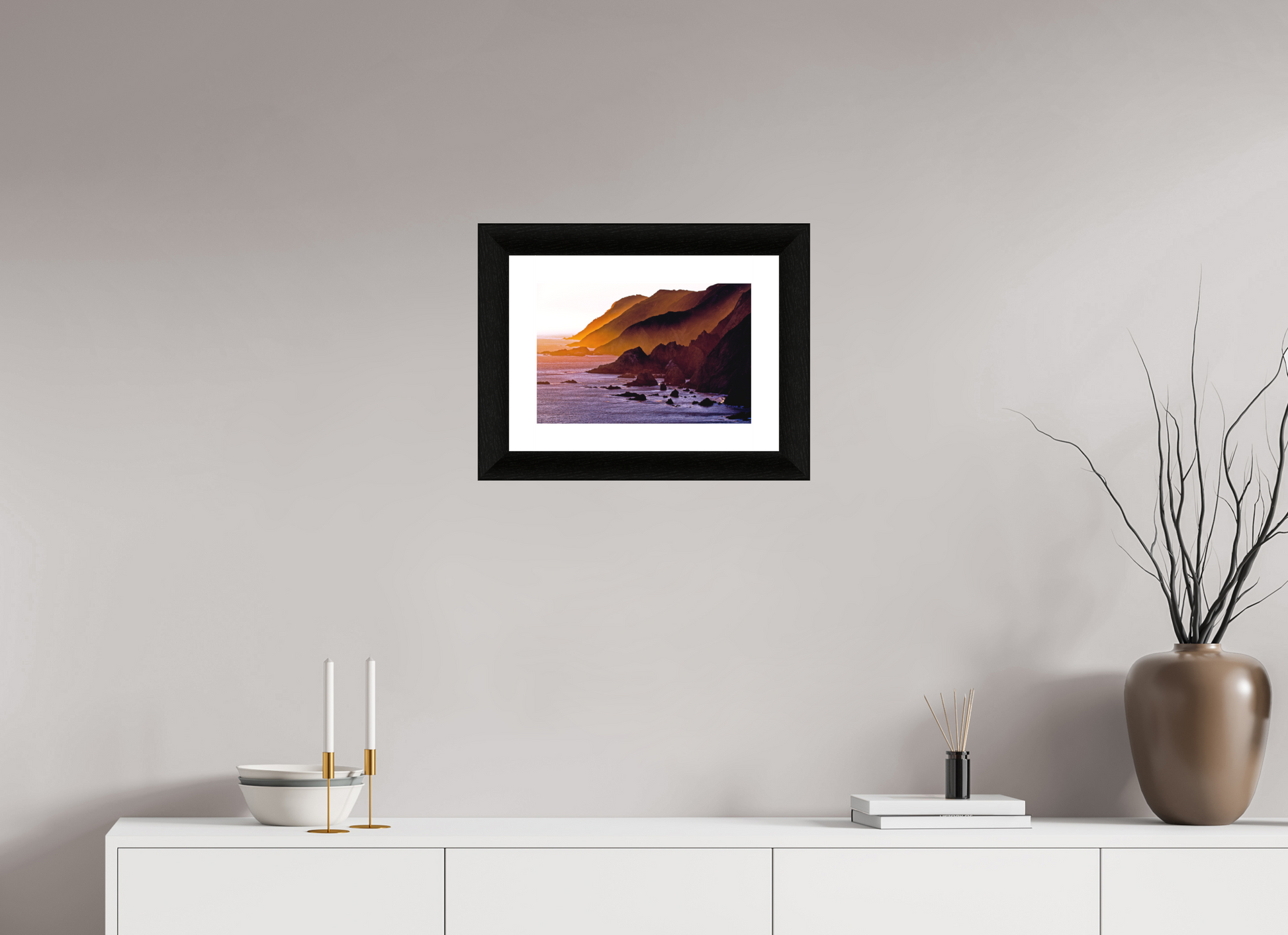 Inspired by the quiet elegance of traditional Japanese landscape paintings, this fine art photograph captures the layered cliffs and rugged shoreline of Point Reyes as they dissolve into the golden light of sunset. The soft gradation of tones, the interplay of shadow and mist, and the rhythmic flow of sea and stone evoke a sense of stillness and timelessness.