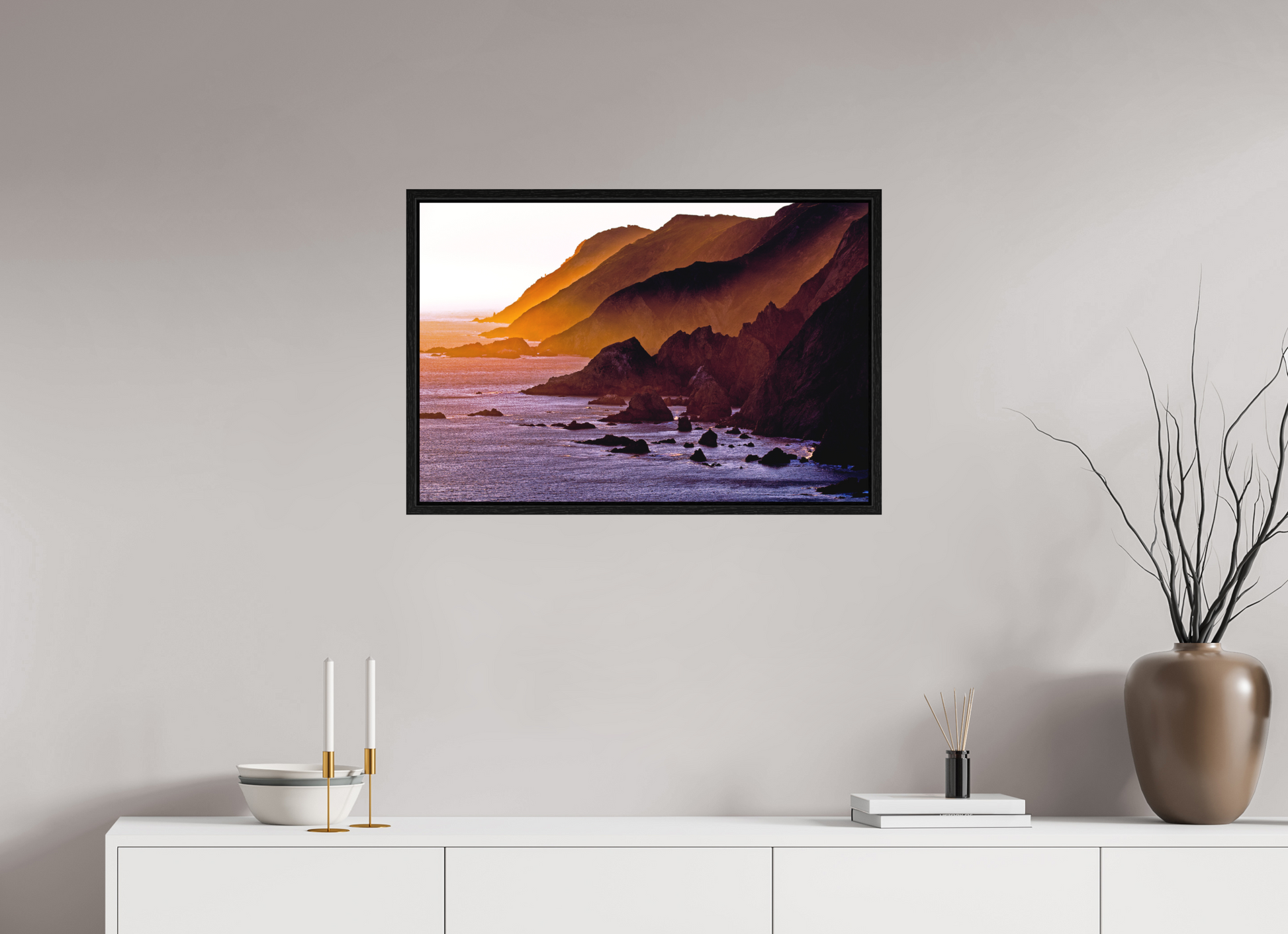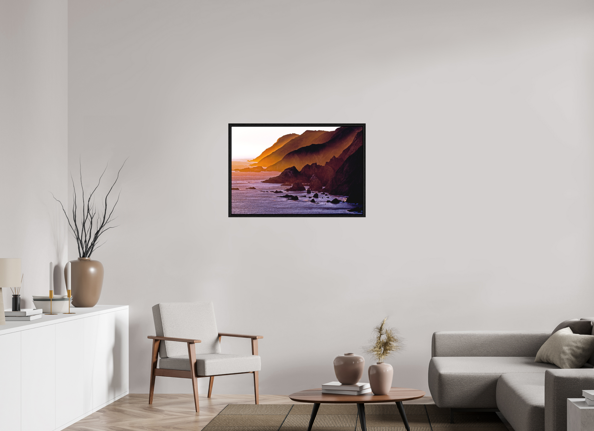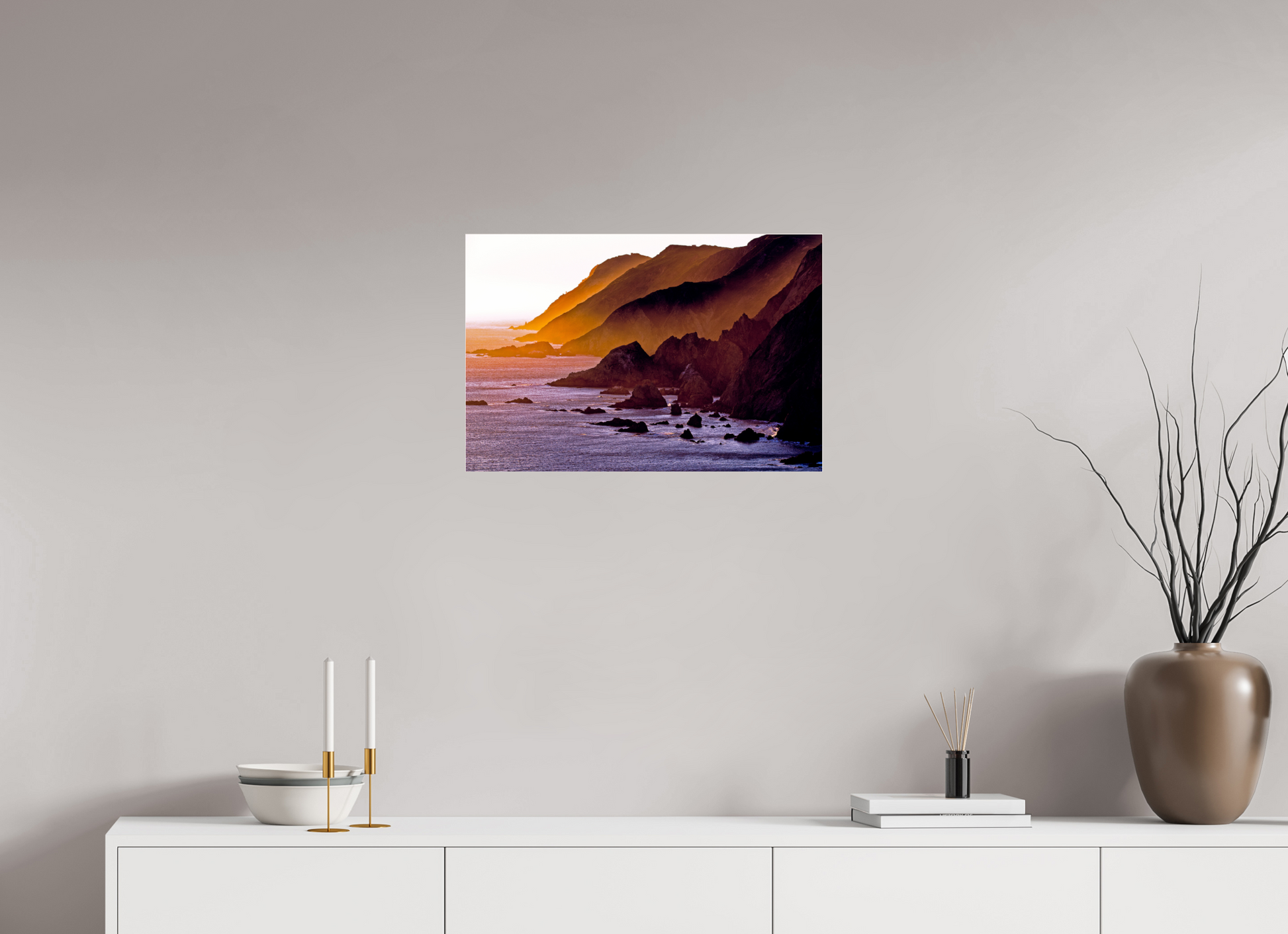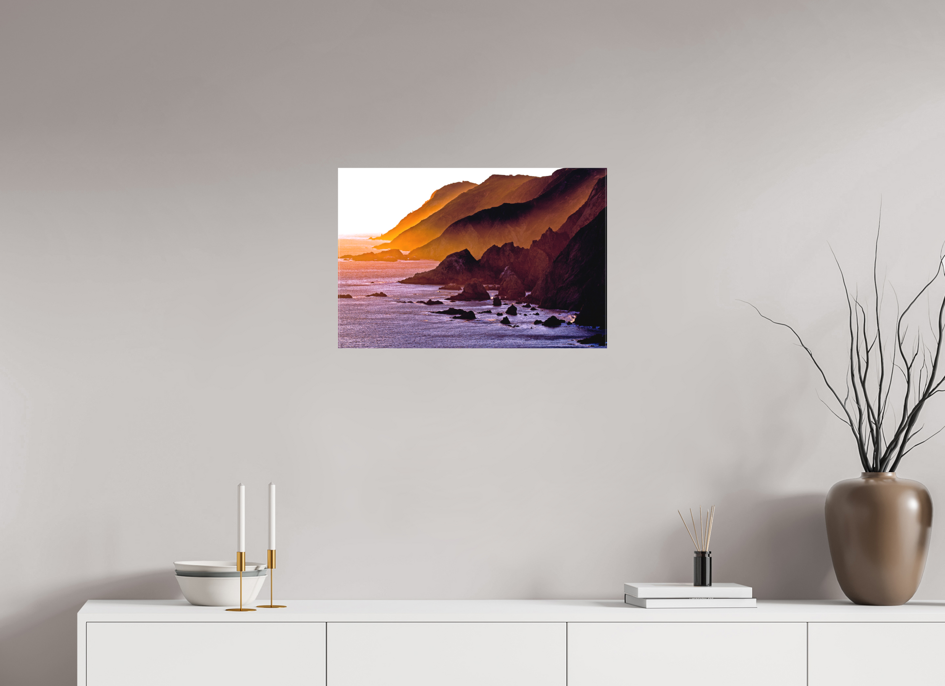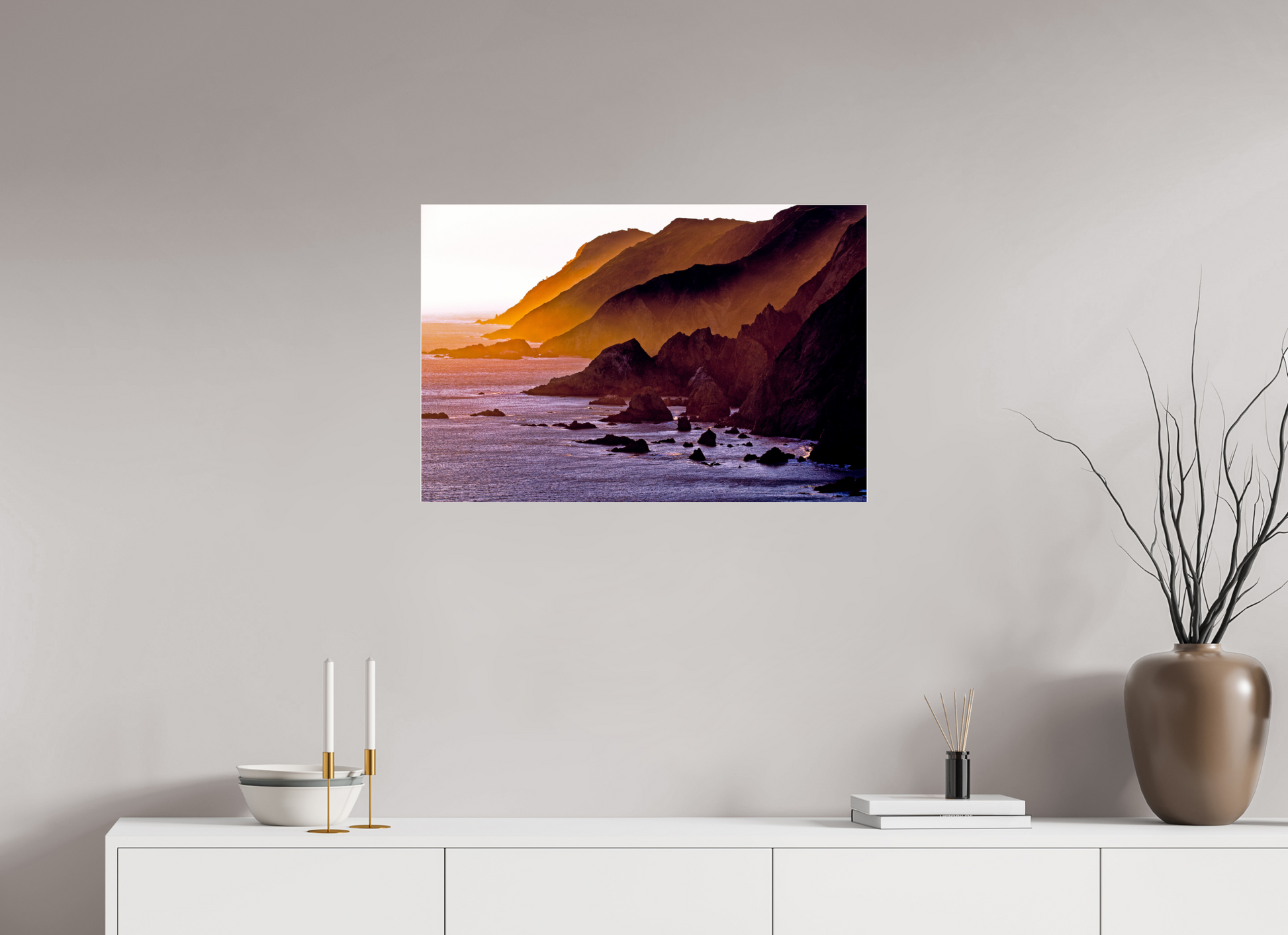 Inspired by the quiet elegance of traditional Japanese landscape paintings, this fine art photograph captures the layered cliffs and rugged shoreline of Point Reyes as they dissolve into the golden light of sunset. The soft gradation of tones, the interplay of shadow and mist, and the rhythmic flow of sea and stone evoke a sense of stillness and timelessness.