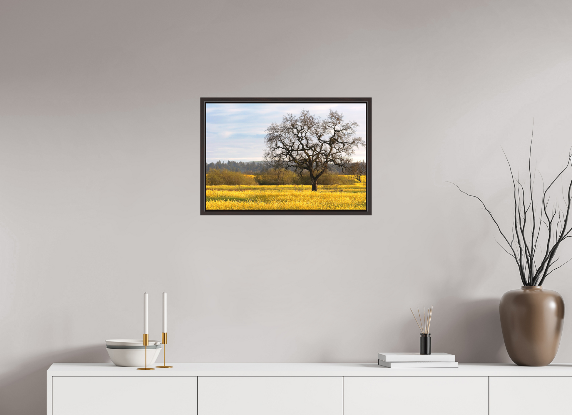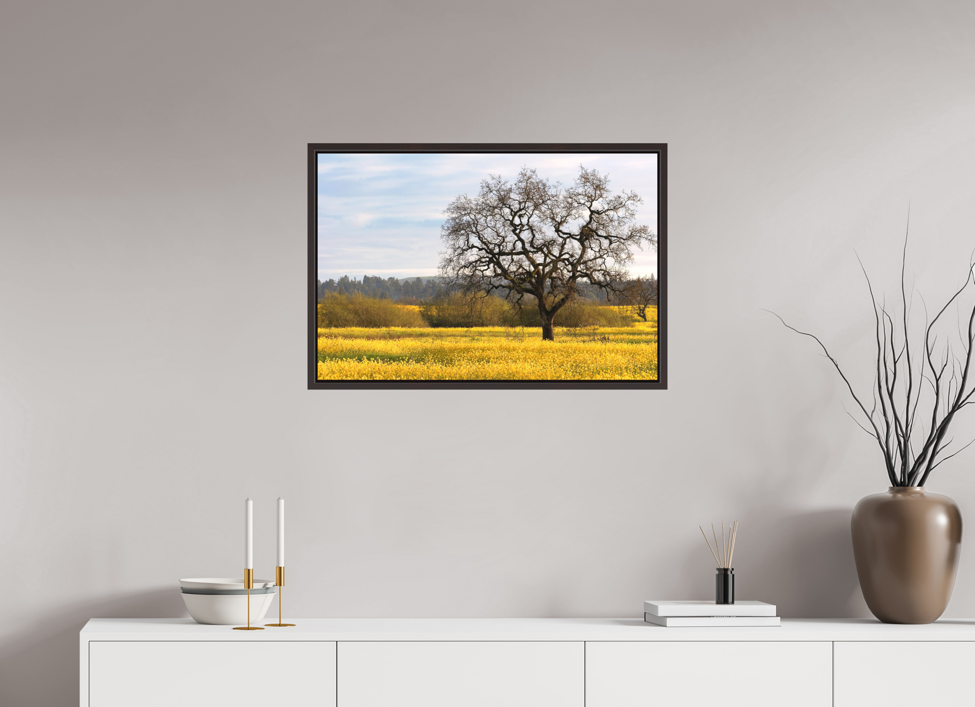 In the wide open stretch of the Laguna de Santa Rosa, a lone oak rises from a sea of blooming mustard. Its gnarled branches reach out against the soft sky, weathered but enduring, standing watch over the changing seasons.