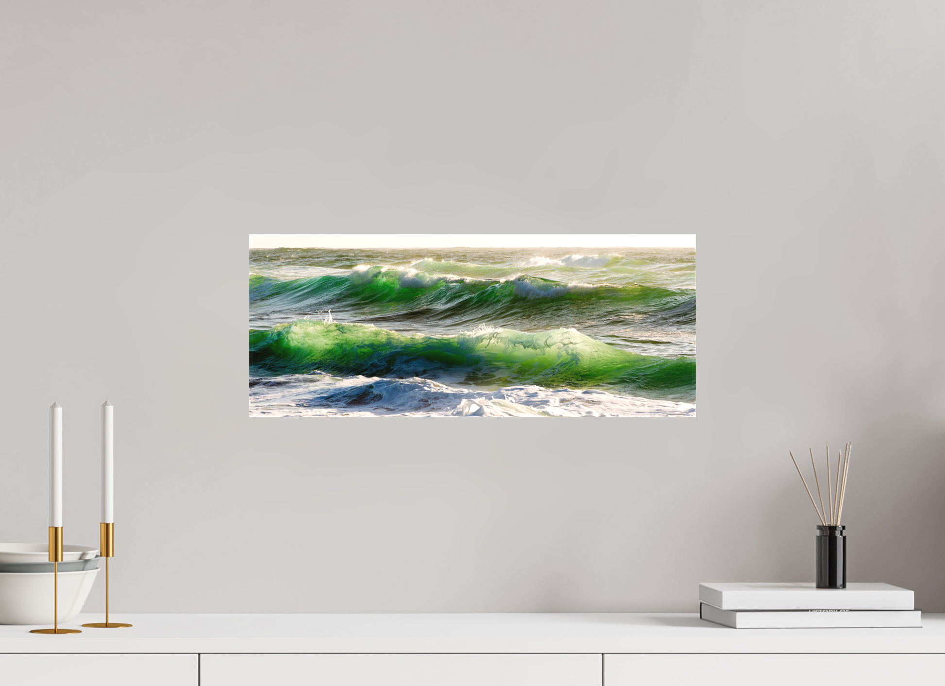 This photograph captures the raw, untamed beauty of the Point Reyes National Seashore—the Pacific in motion, alive with light and power. Sunlight pours through the waves, revealing their true color: deep emerald and jade, glowing from within. It’s a rare moment of natural clarity, where the sea shows its real self. It’s a moment of wild grace, frozen in time.