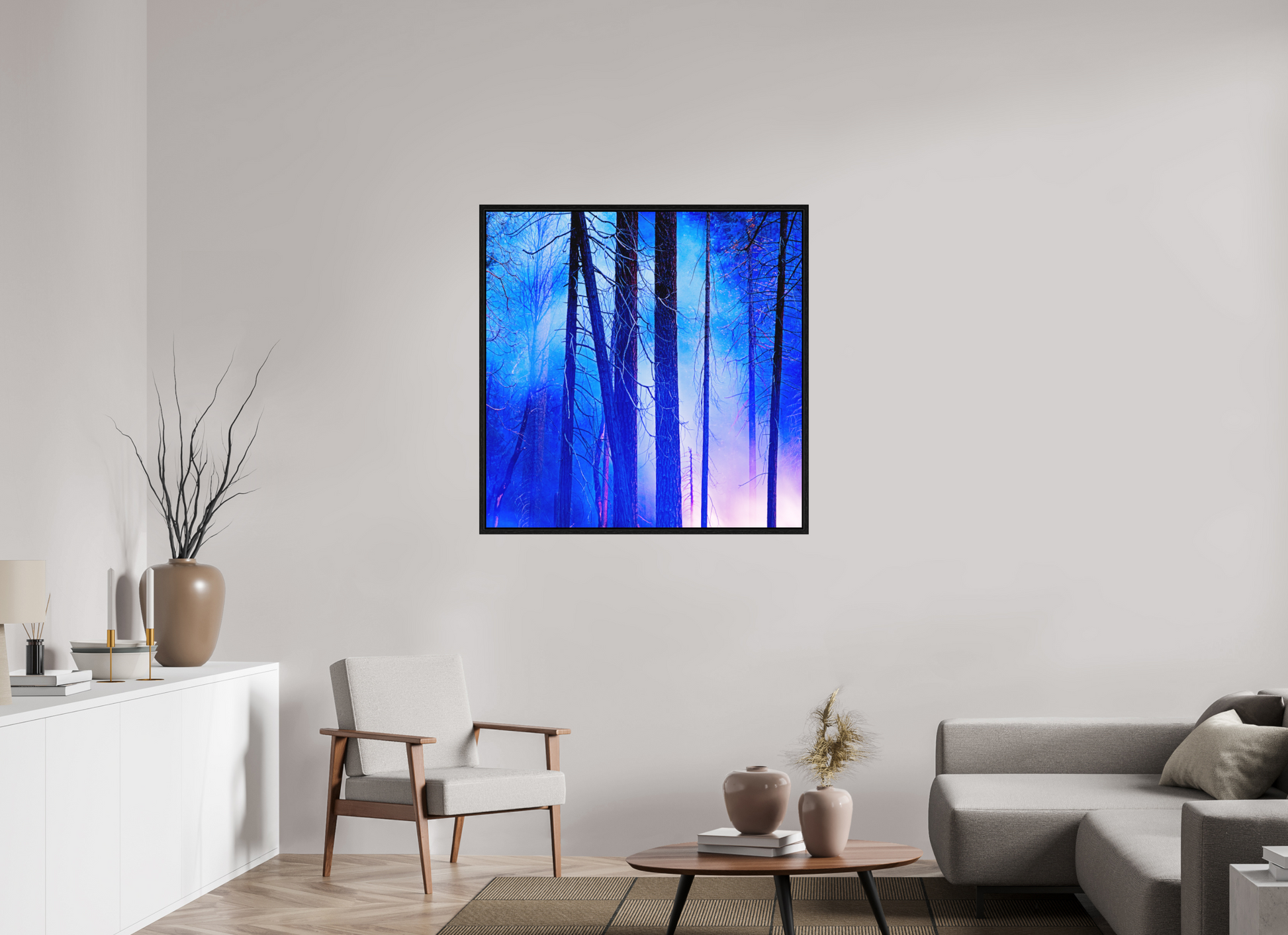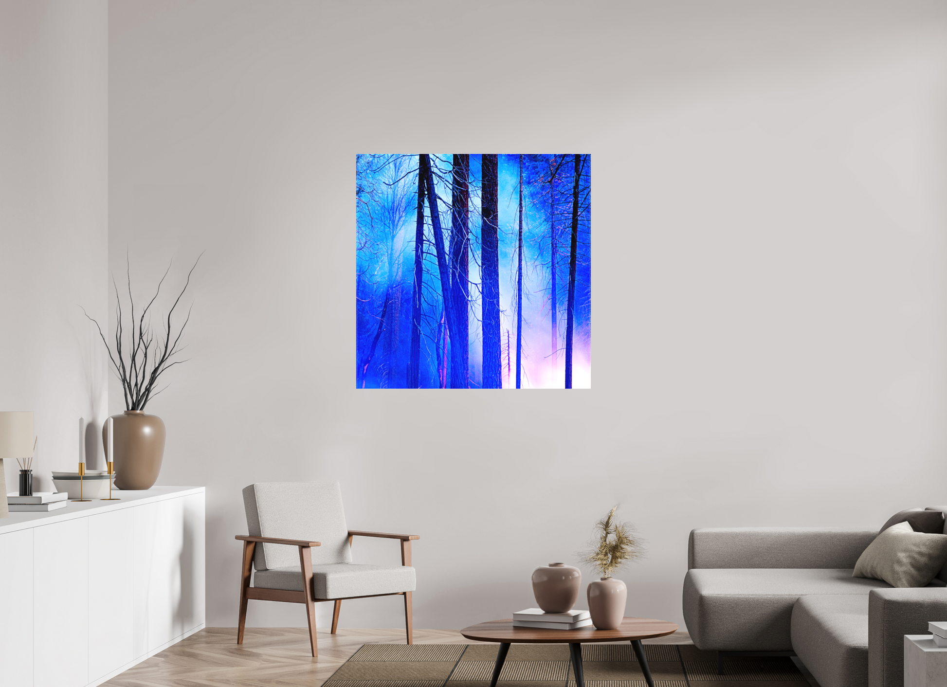 The result is surreal and painterly, echoing the moody elegance of Eyvind Earle’s landscapes. This is nature in transition—mysterious, fleeting, and unforgettable. A striking addition to any space.