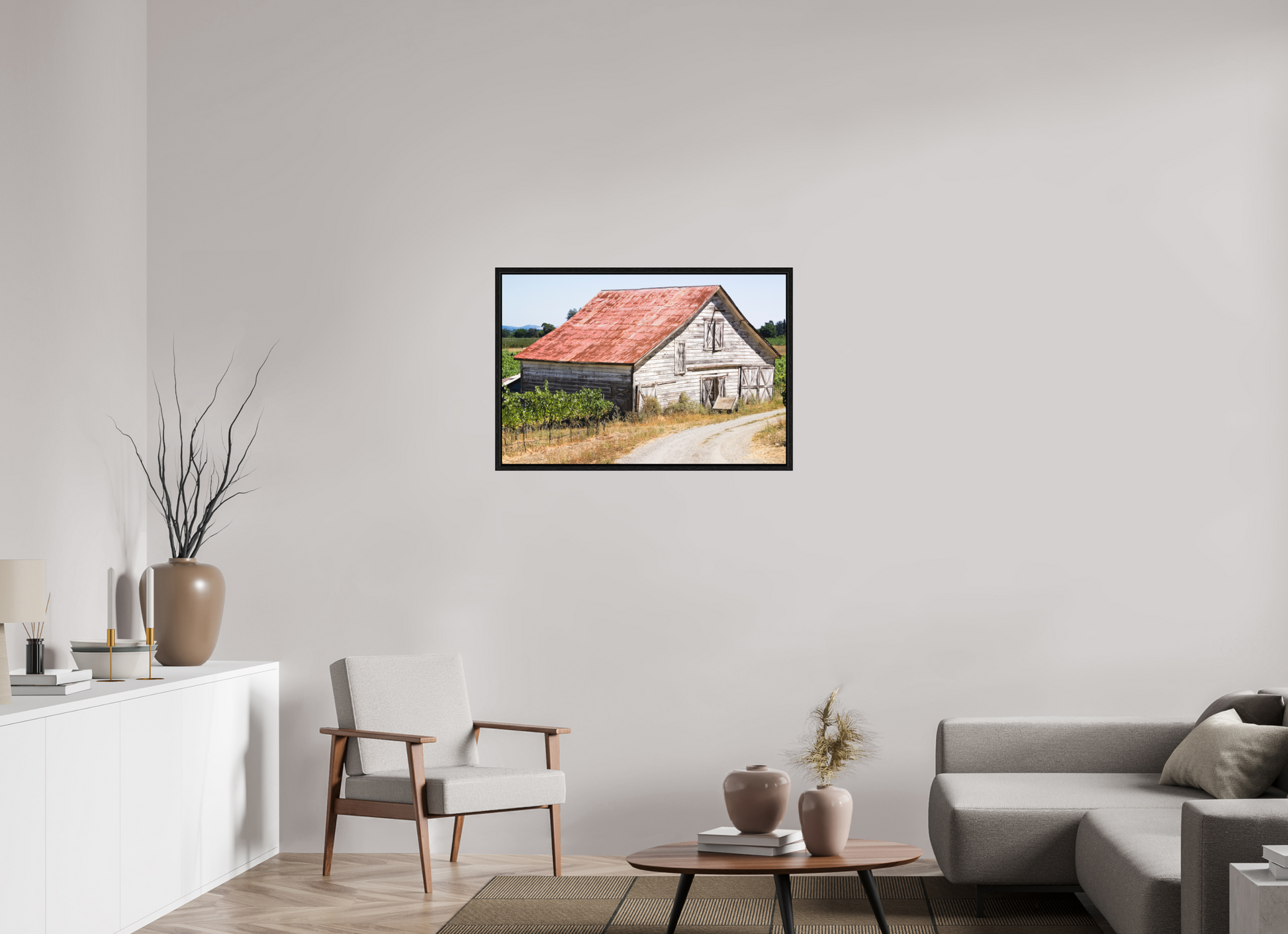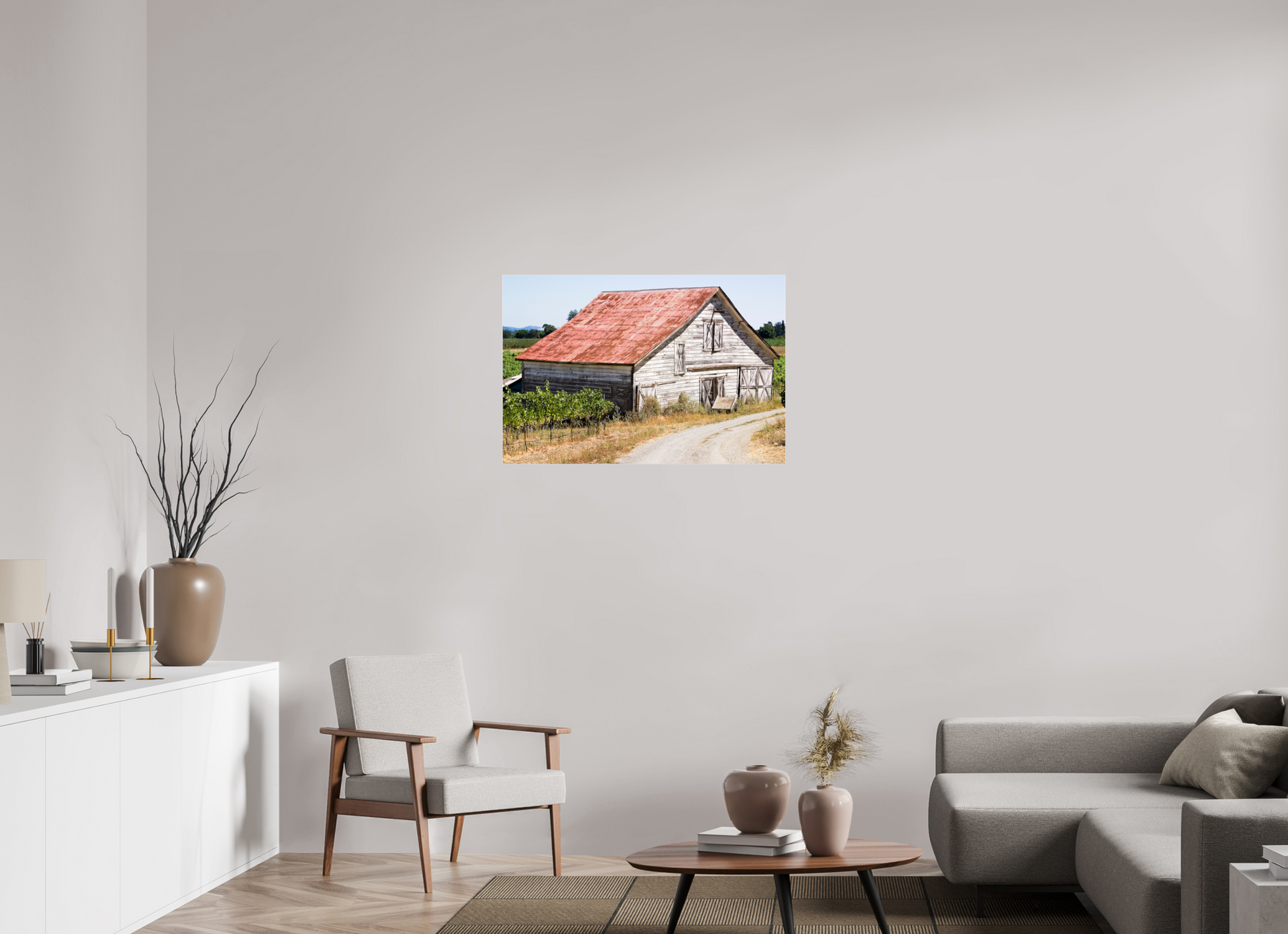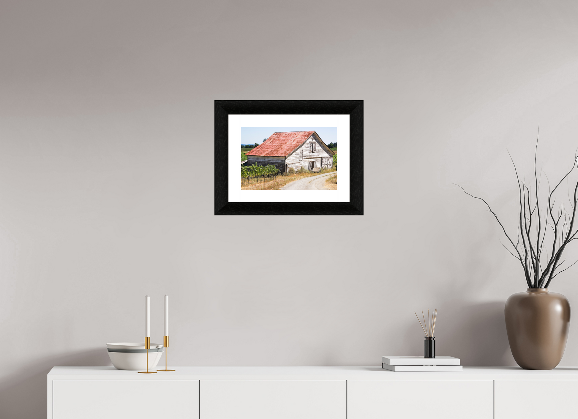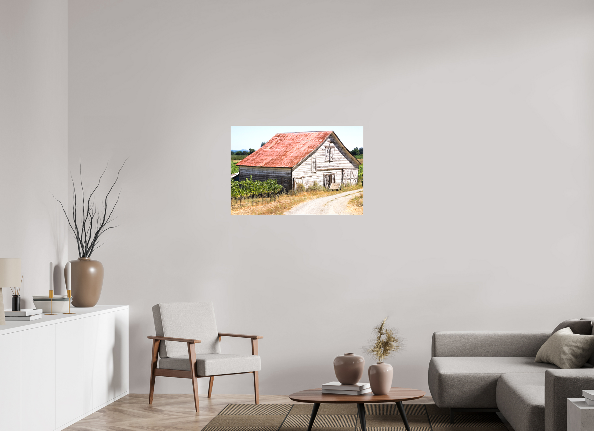 This fine art print—captured in Dry Creek Valley—is the very first photograph of wine country I ever offered for sale. The weathered barn, rusted roof, and winding gravel path are all real, rendered with such clarity and character that viewers often mistake it for a painting.