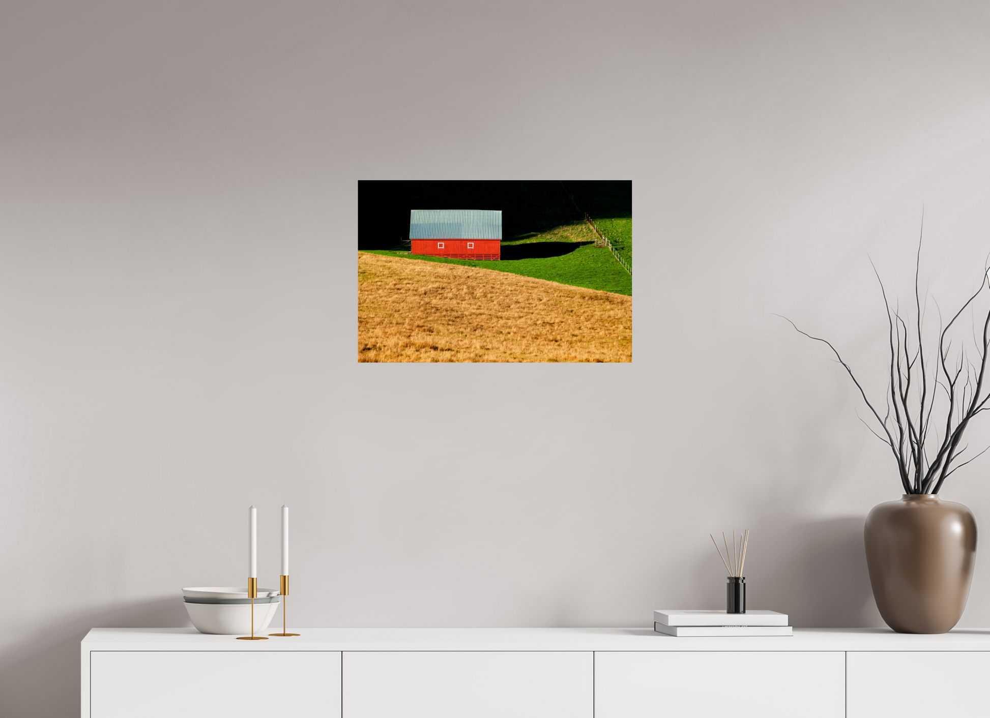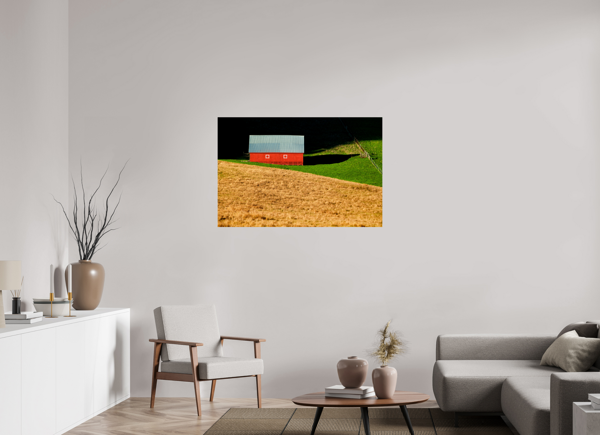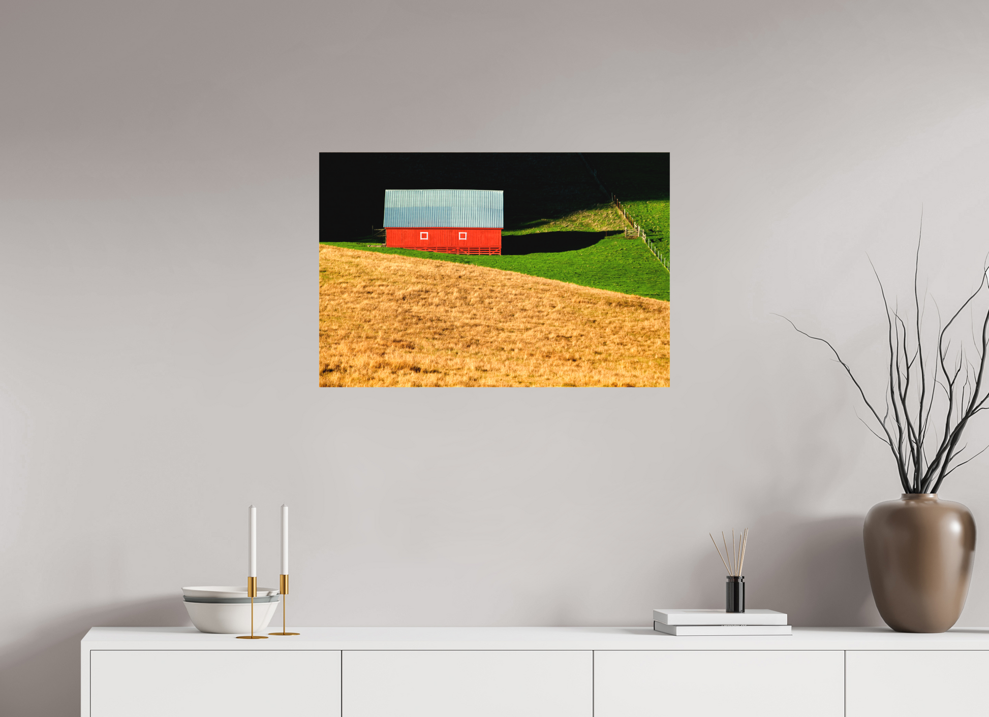 At the heart of it all stands a classic red barn, built in the 1800s—weathered, enduring, and perfectly framed by light and shadow. This image is more than a landscape; it’s a quiet story of land, animals, and tradition, told in color and shape. A true California pastoral, ready to hang.