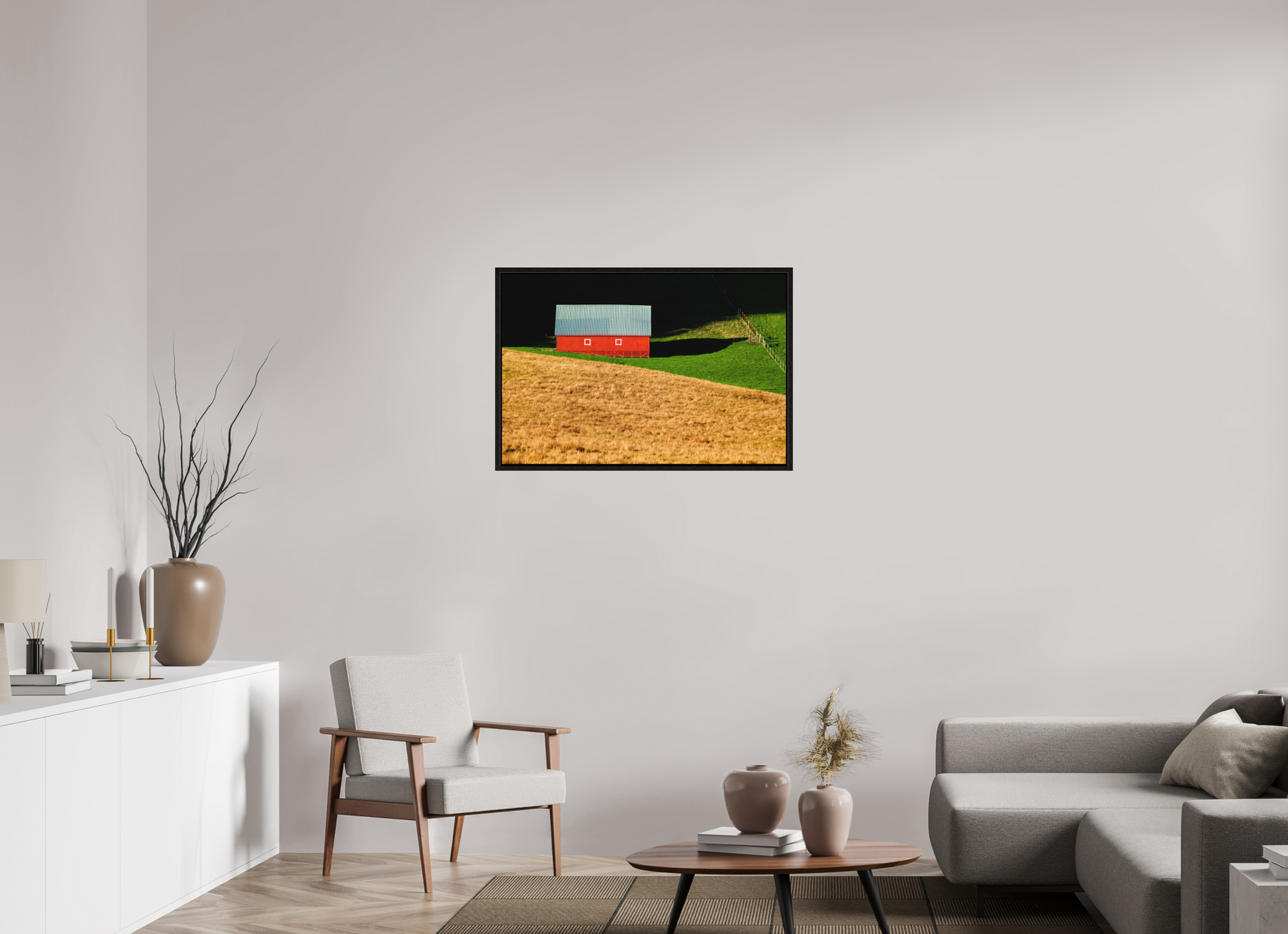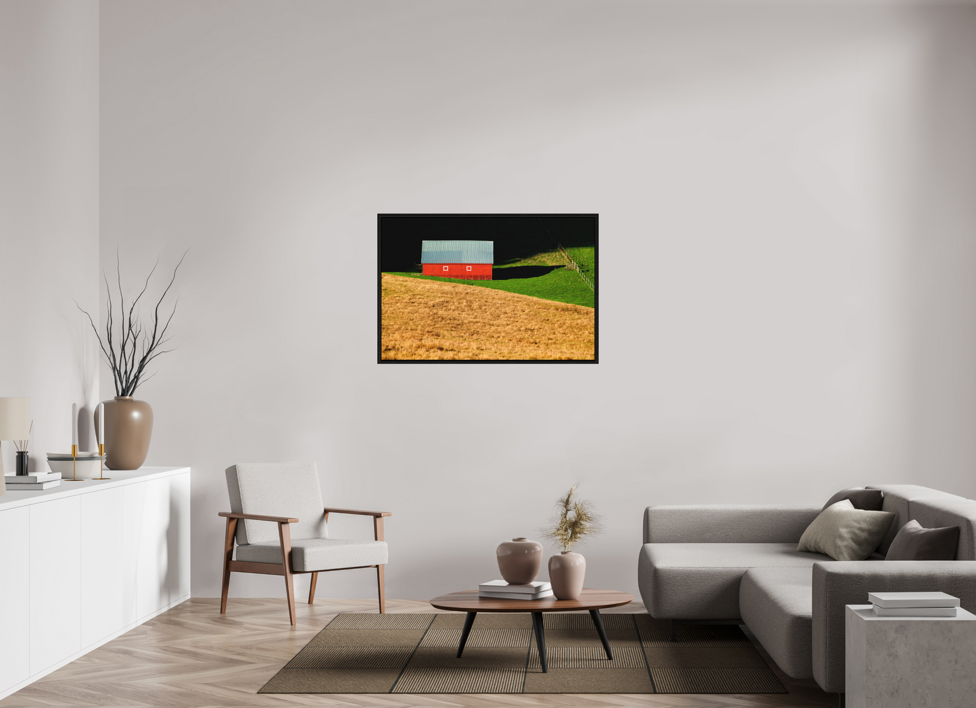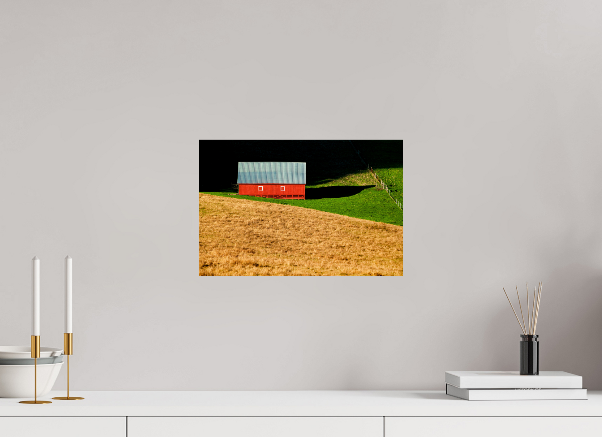 At the heart of it all stands a classic red barn, built in the 1800s—weathered, enduring, and perfectly framed by light and shadow. This image is more than a landscape; it’s a quiet story of land, animals, and tradition, told in color and shape. A true California pastoral, ready to hang.
