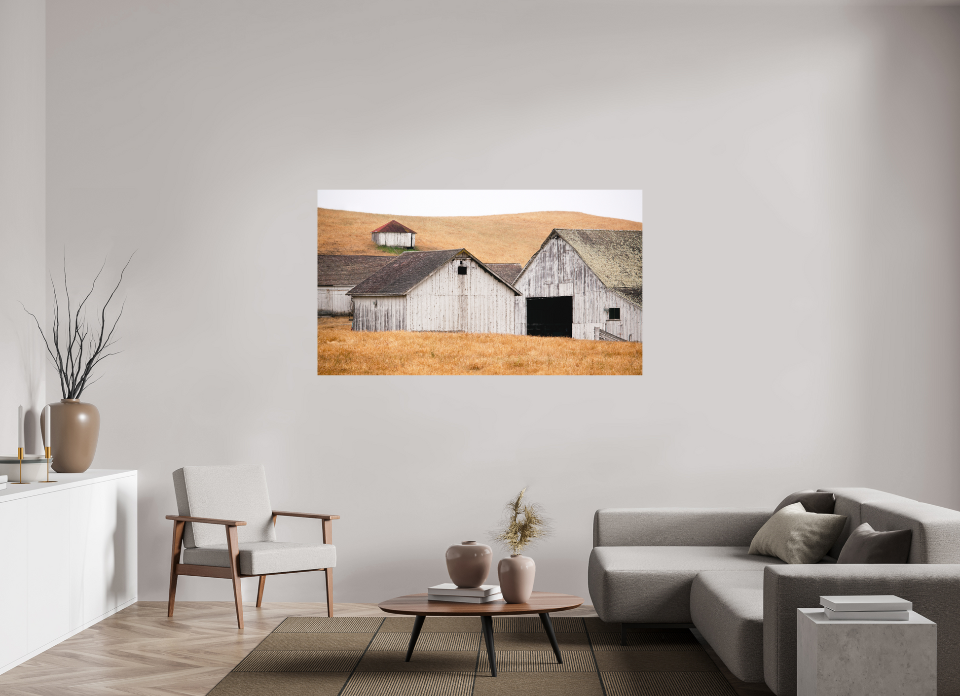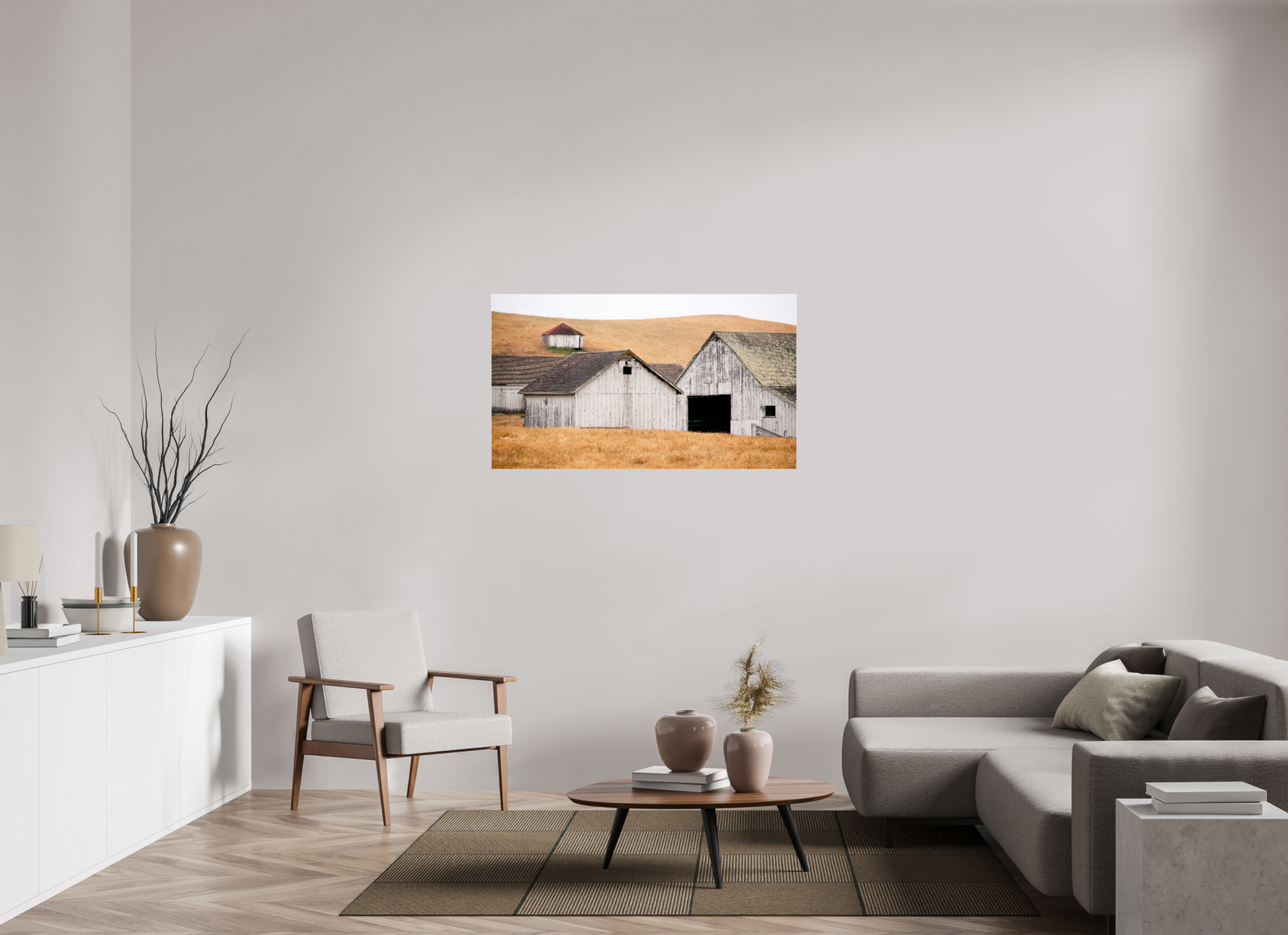 The weathered barns, the soft curve of the golden hills, and the patch of green grass near the old well — still fed by a slow leak — tell a story of endurance, resourcefulness, and quiet beauty.