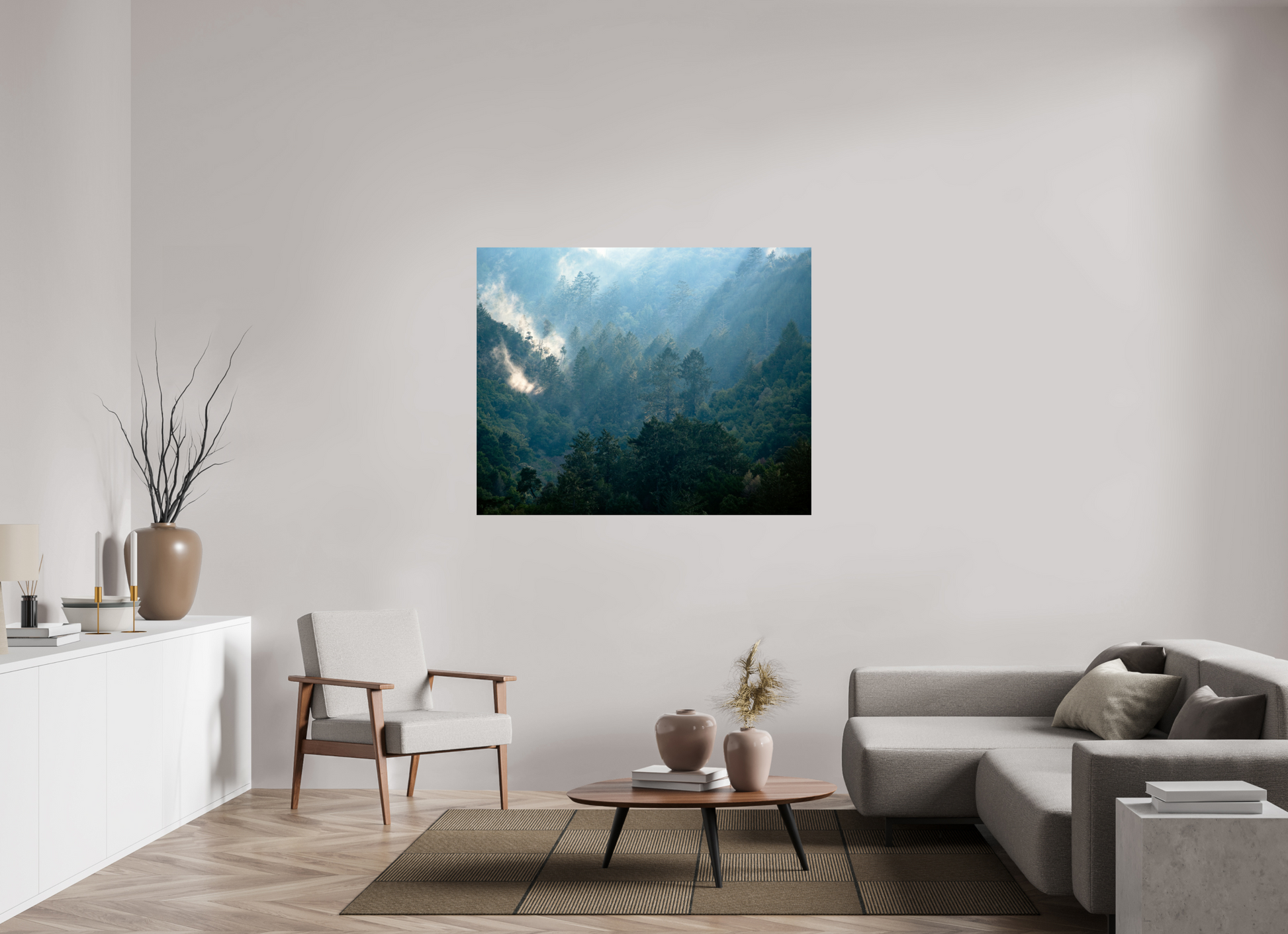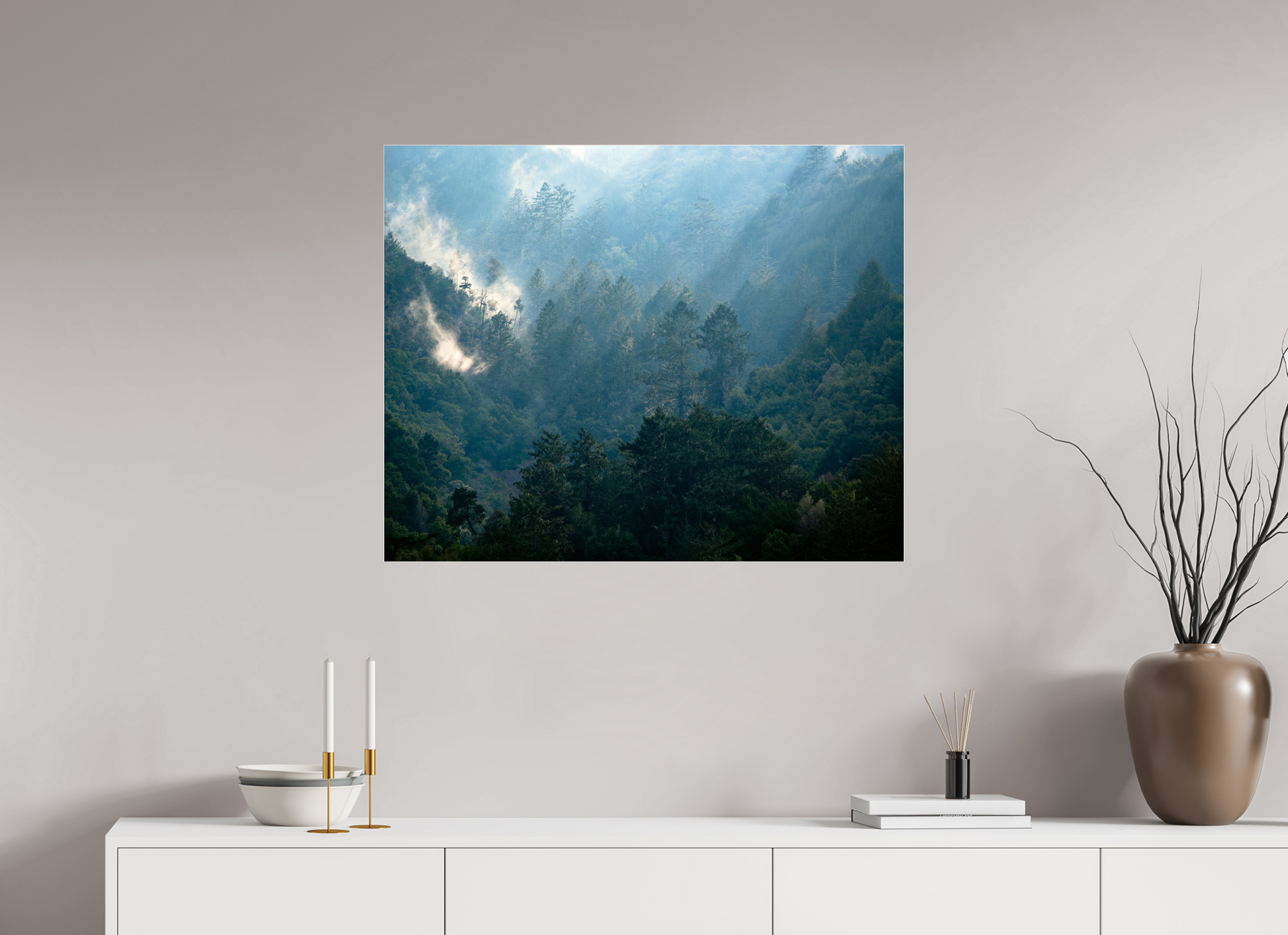 Bring home the quiet beauty of a winter afternoon on the wild coast. Captured from across Tomales Bay, this fine art photograph reveals the misty slopes of Mount Vision as filtered light brushes through layers of towering forest. The cool, smoky tones and delicate winter fog evoke a sense of stillness—an untouched, almost secret moment in nature.
