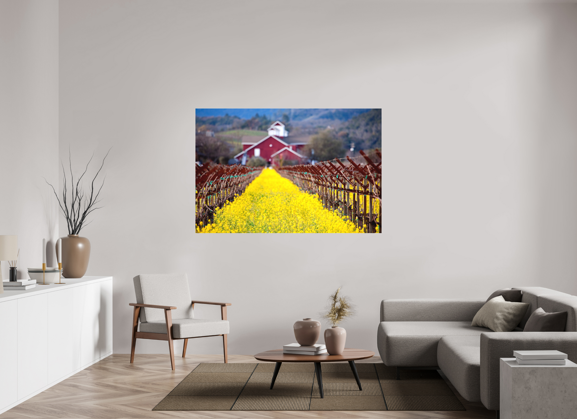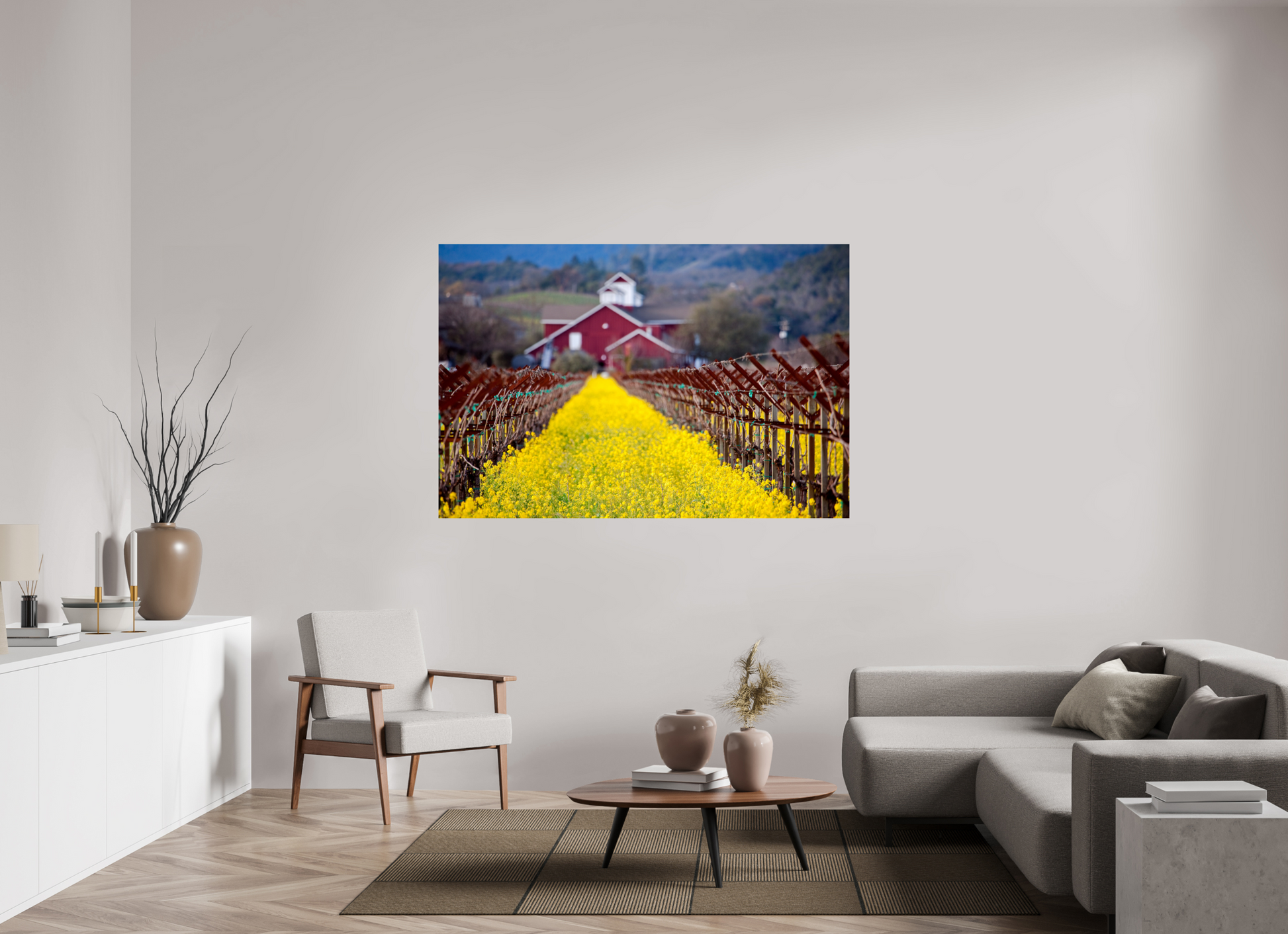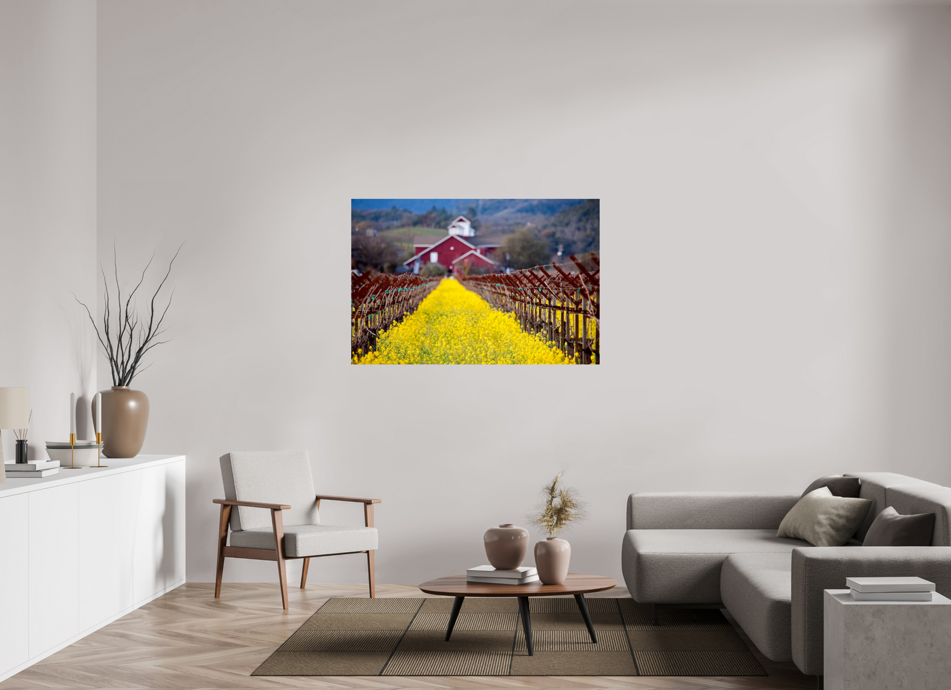 Printed in fine detail, this image brings the feeling of standing there—between seasons, between rows—into your space. A celebration of winter’s color, and the quiet geometry of the vineyard.