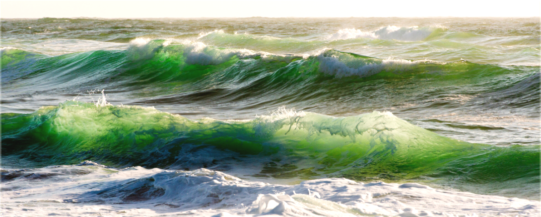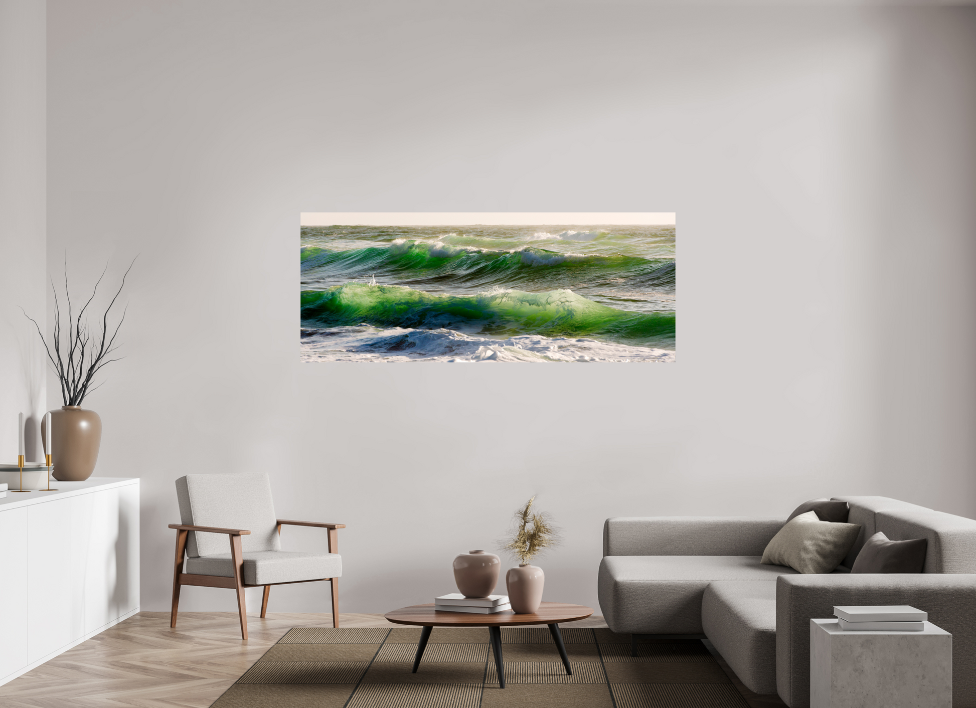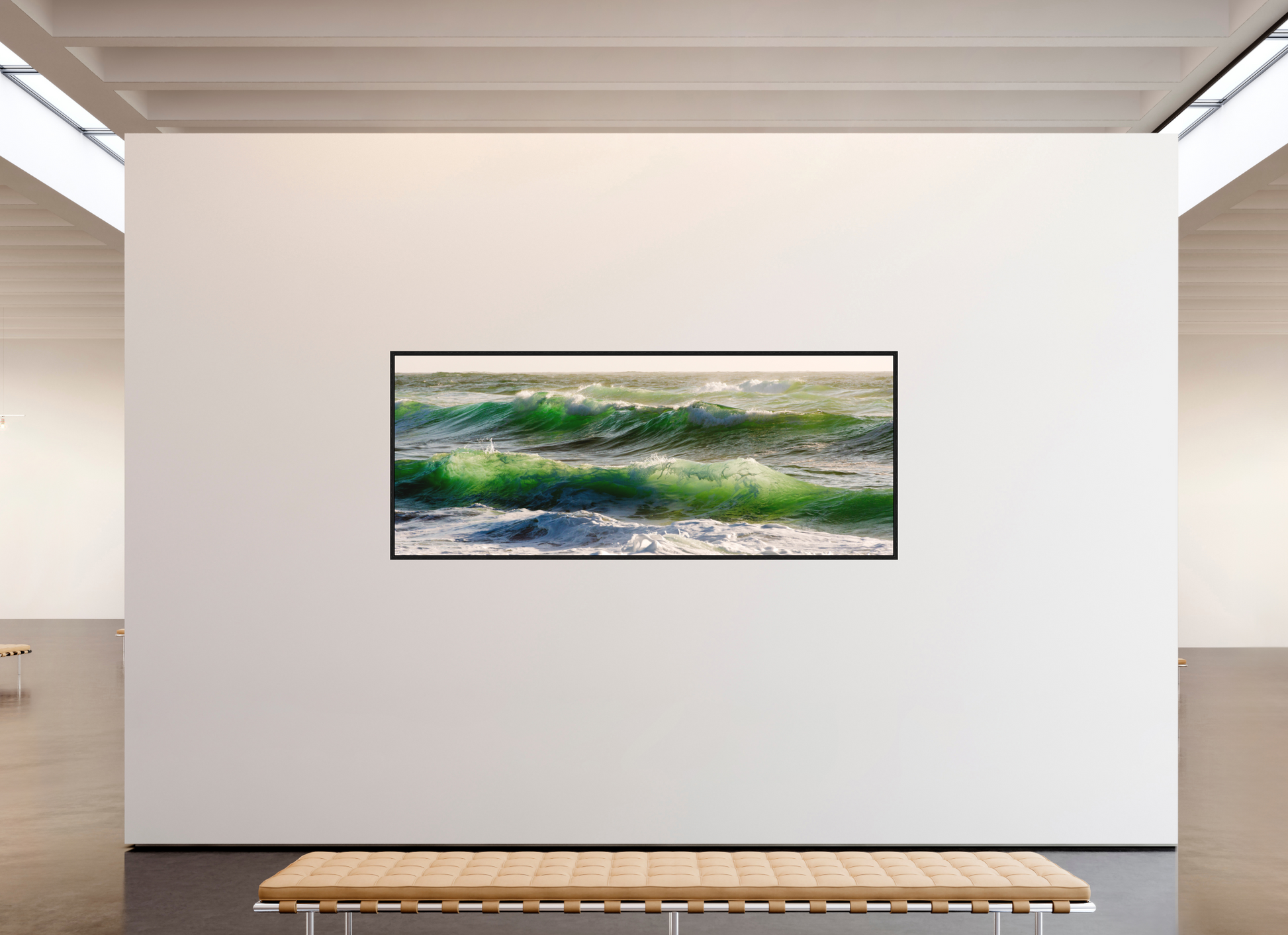 This photograph captures the raw, untamed beauty of the Point Reyes National Seashore—the Pacific in motion, alive with light and power. Sunlight pours through the waves, revealing their true color: deep emerald and jade, glowing from within. It’s a rare moment of natural clarity, where the sea shows its real self. It’s a moment of wild grace, frozen in time.