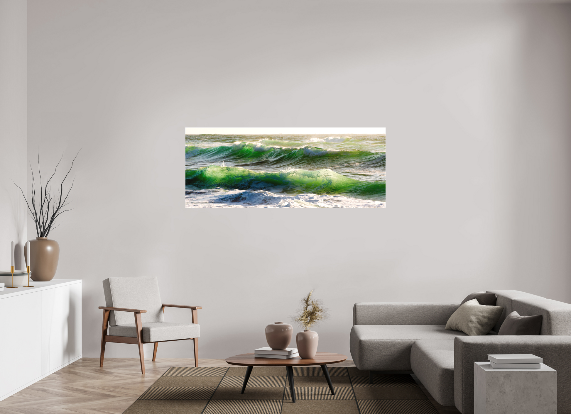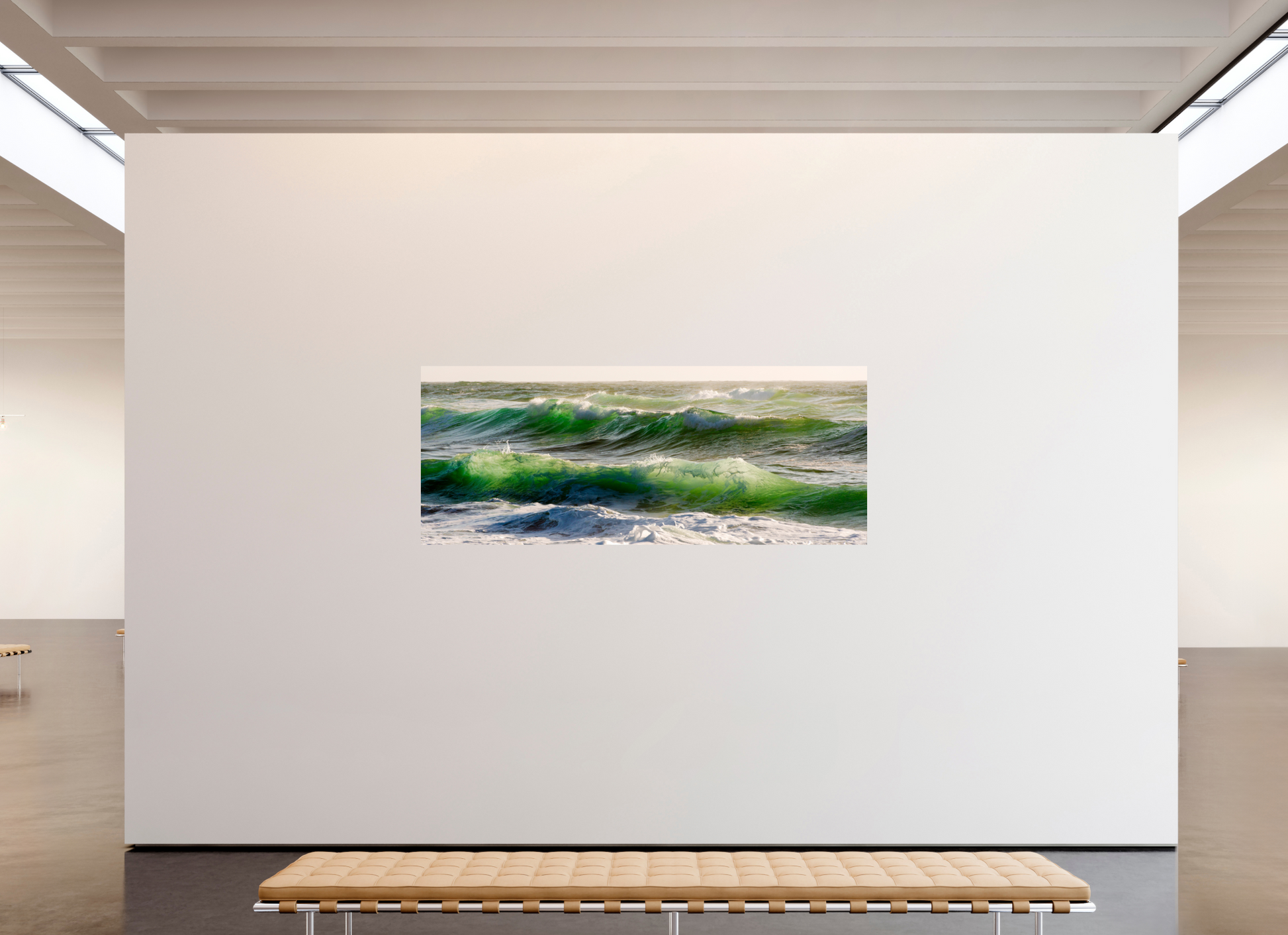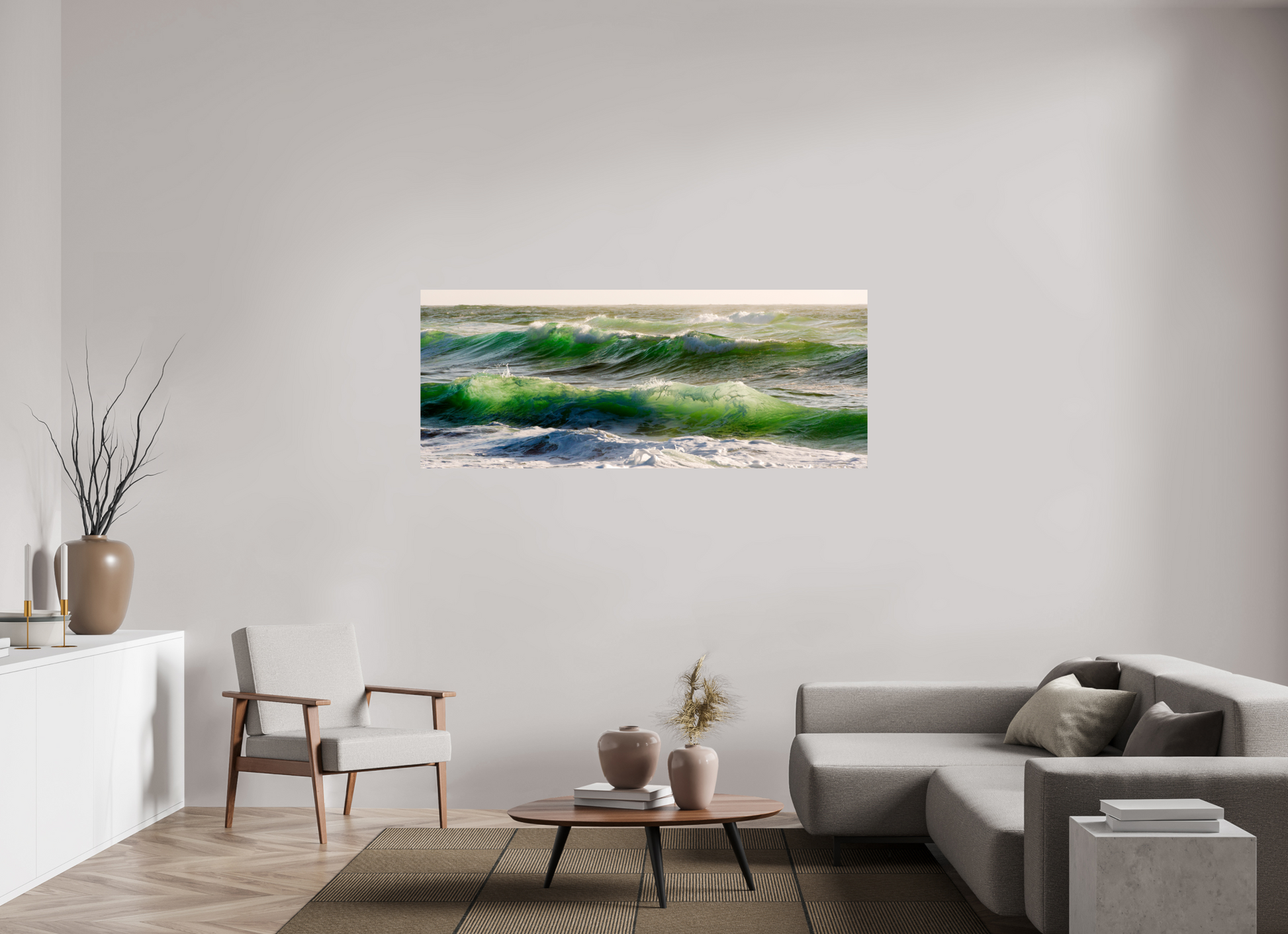 This photograph captures the raw, untamed beauty of the Point Reyes National Seashore—the Pacific in motion, alive with light and power. Sunlight pours through the waves, revealing their true color: deep emerald and jade, glowing from within. It’s a rare moment of natural clarity, where the sea shows its real self. It’s a moment of wild grace, frozen in time.